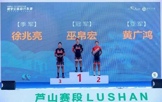 作为本次赛事的第三站,芦山赛段兼具都市人文风情和自然生态风光,赛道总长50公里,参赛车手们从芦山县体育馆出发,途经迎宾大道、根雕一条街——樊敏路、省道210后回到起点,在5公里的赛道上绕行10圈,沿途感受汉姜古韵魅力、中国乌木根雕艺术之都的独特氛围以及芦山震后重建的城市发展。经过激烈比拼,来自美利达-诺飞客中国车队的巫帛宏以1小时9分钟51秒拔得头筹,来自IGPSPORT瑞豹车队的黄广鸿与同样来自美利达-诺飞客中国车队的徐兆亮紧随其后。最终美利达-诺飞客中国车队的巫帛宏以三站总成绩第一获得黄衫。
